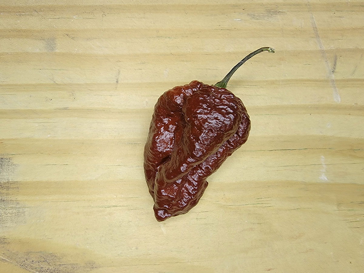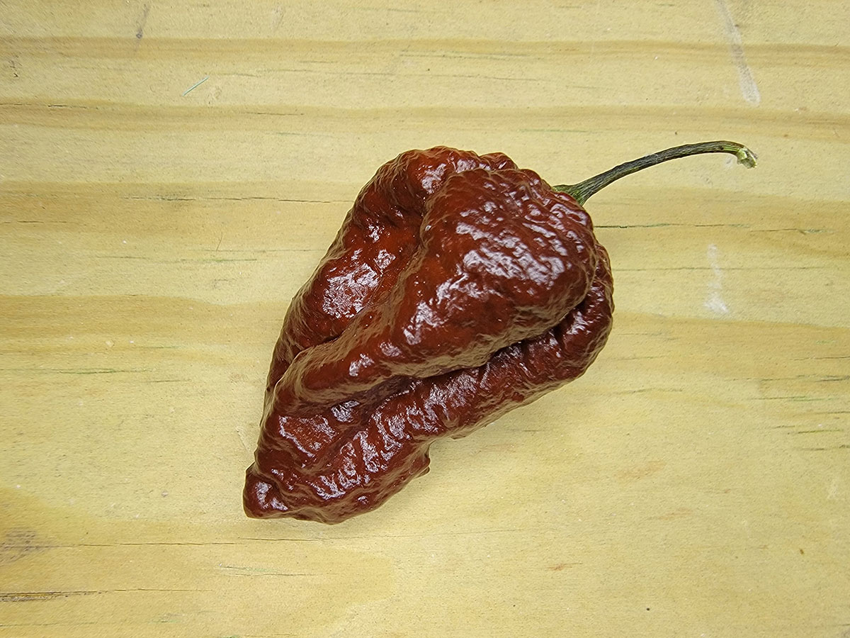 This pepper is derived from the Naga Morich and is distinct from the Chocolate Naga Viper.