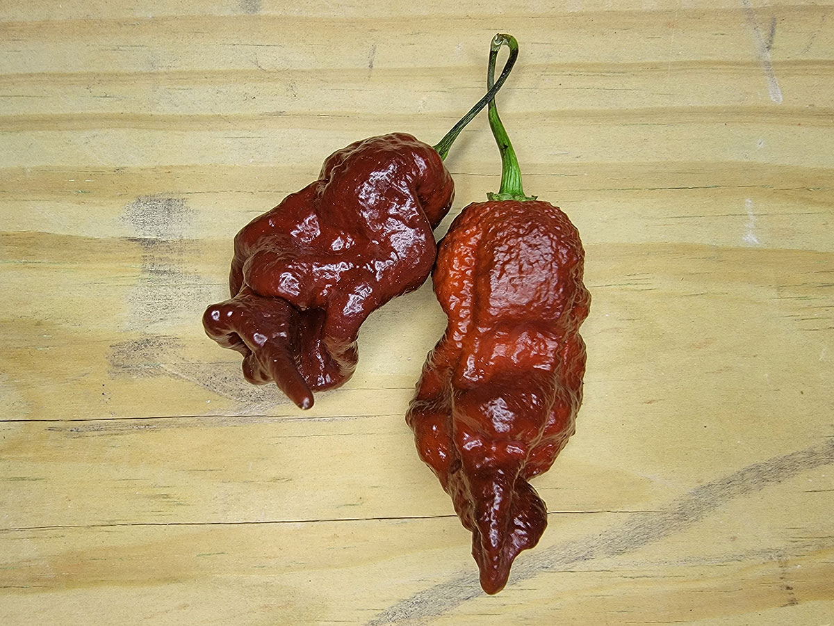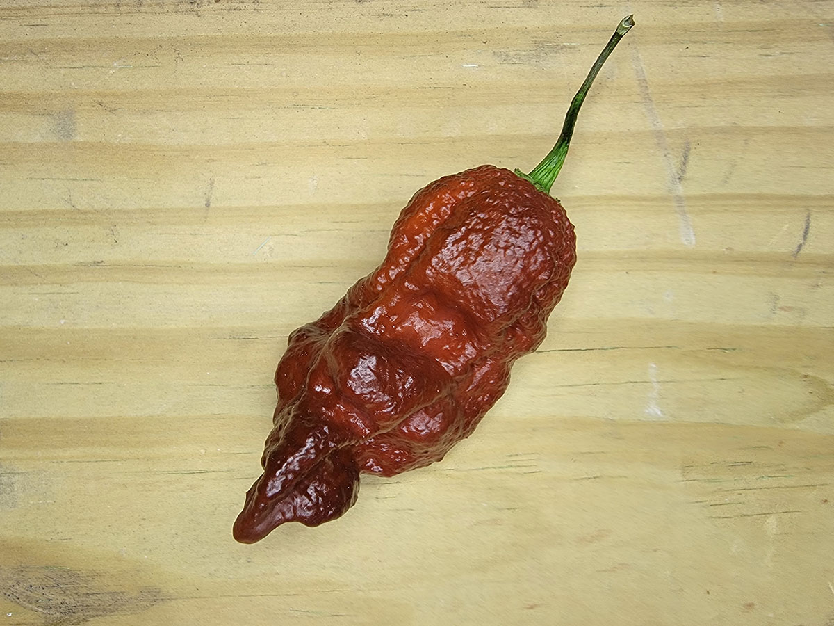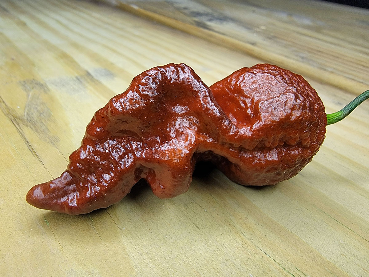 A common consenus is that the Chocolate Primotalii is not yet fully stable, which is why it is hard to track down it's origins. One thing is for certain, Primotalii is involved and the heat level is claimed to be one of the hottest peppers in the world. Even the legendary Johhny Scoville made this claim several times on his Youtube channel while reviewing it. This pepper has a lot to say. Eat with caution.