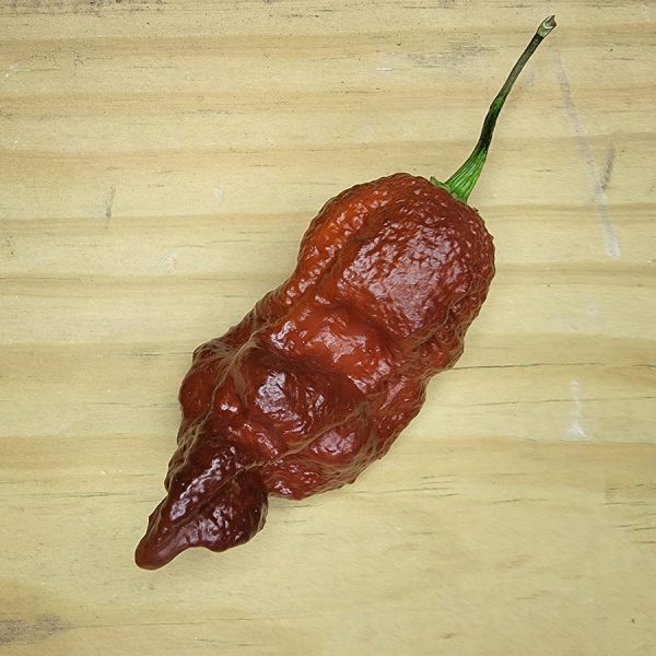 • Shape and Size: The Chocolate Primotalii pepper has an elongated, somewhat gnarly appearance, typical of many superhot varieties. It often has a pointed, stinger-like tail.